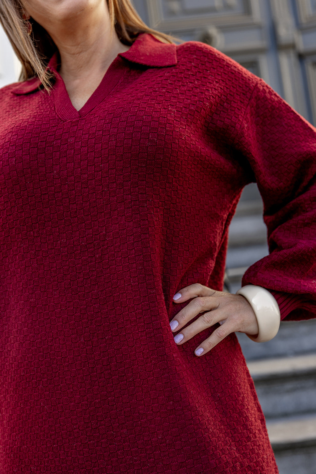 Mika - korte T-shirt lange mouw gestreept - burgundy/zwart