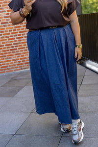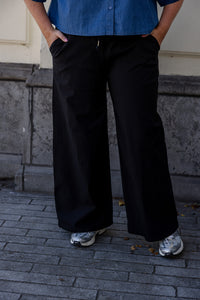 Safi - wijde broek parachutestof - Leopard bruin/marine