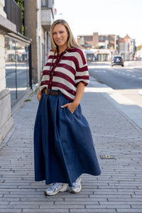 Pom - blouse geruit kort - donkergrijs/burgundy