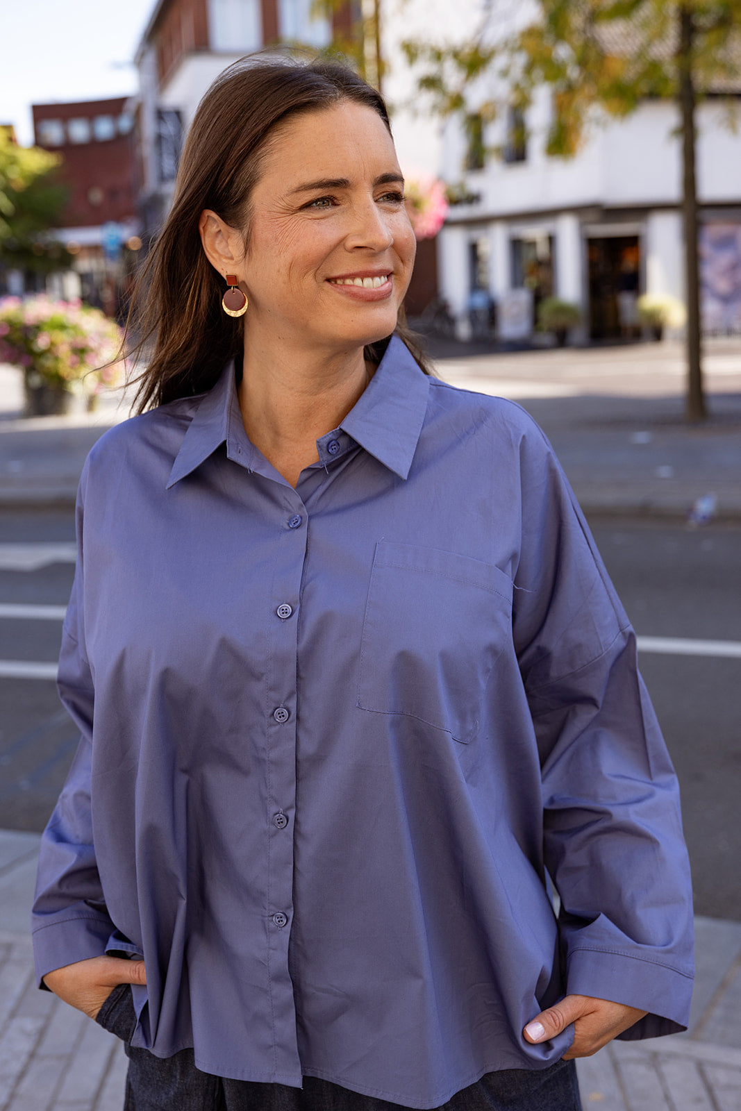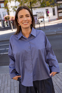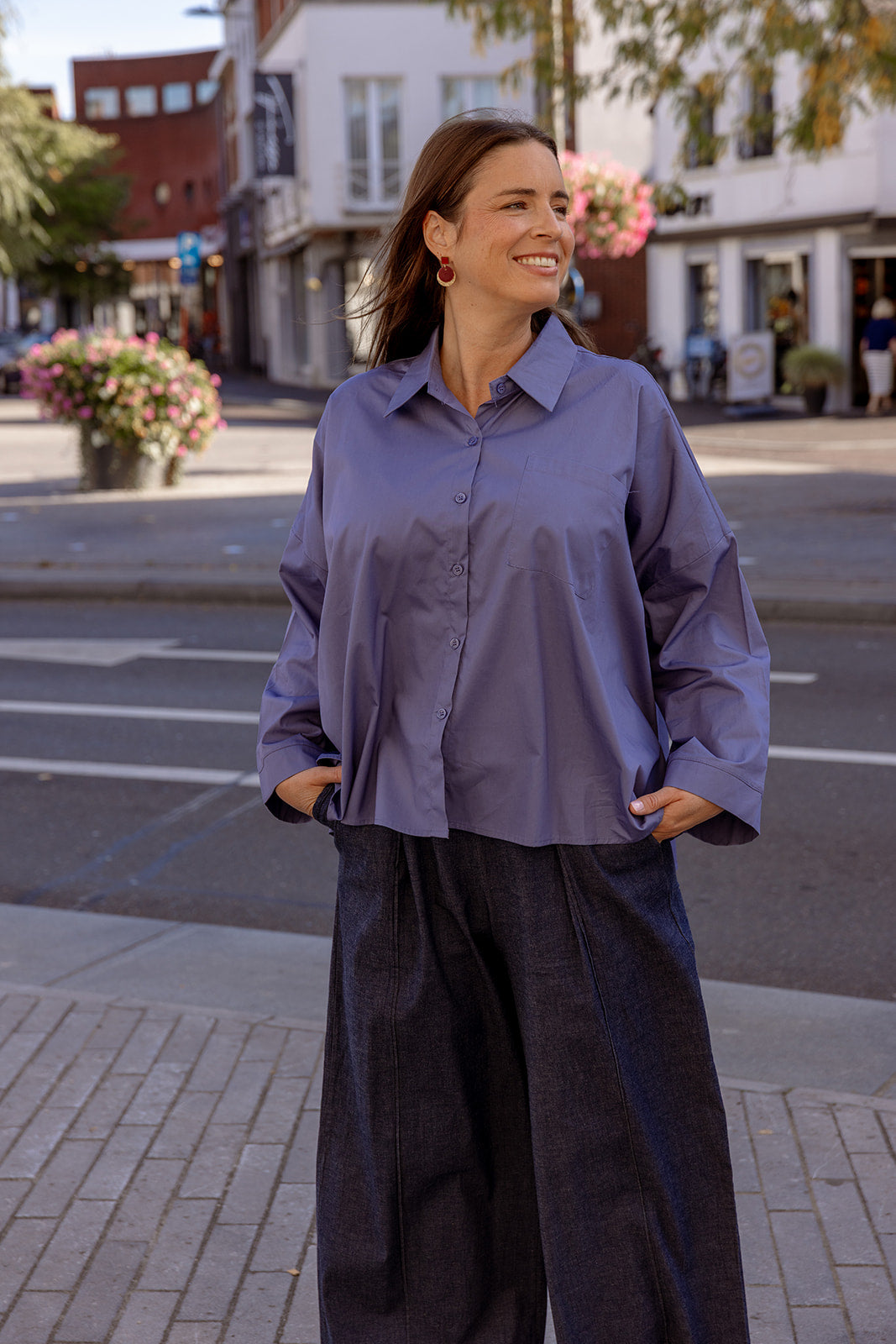 Met de losse snit en doorknoop maakt ze elke outfit luchtig, comfortabel en toch stijlvol. Dankzij de rechte kraag en borstzak krijgt ze een moderne, stoere toets, terwijl de zwierige fit voor een vleugje elegantie zorgt. Combineer casual op een jeans of draag haar chic op een rok of pantalon – eindeloos veelzijdig!