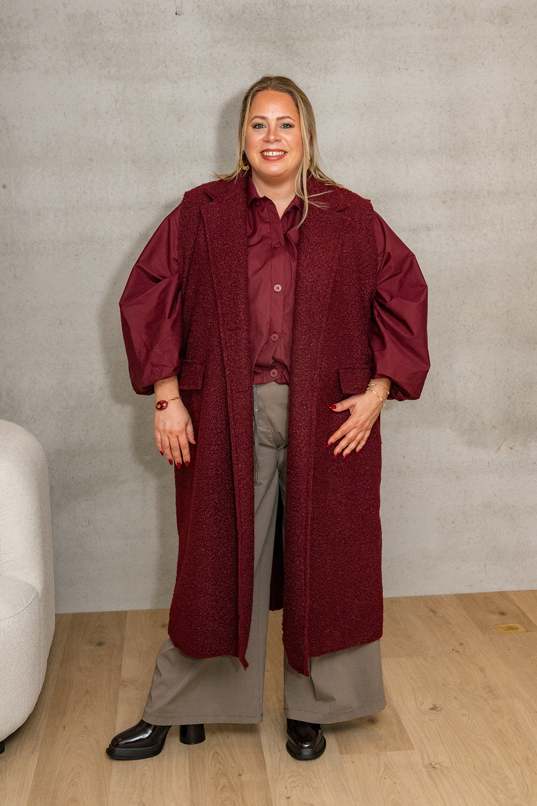Rika - mouwloze jas - burgundy