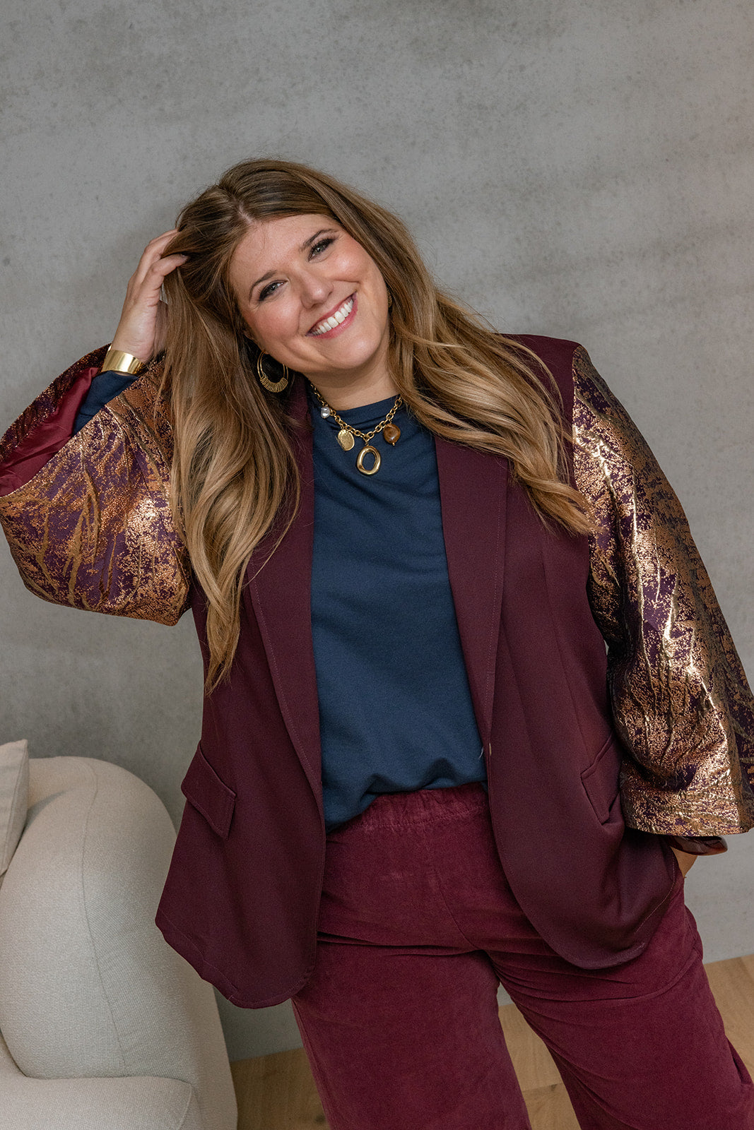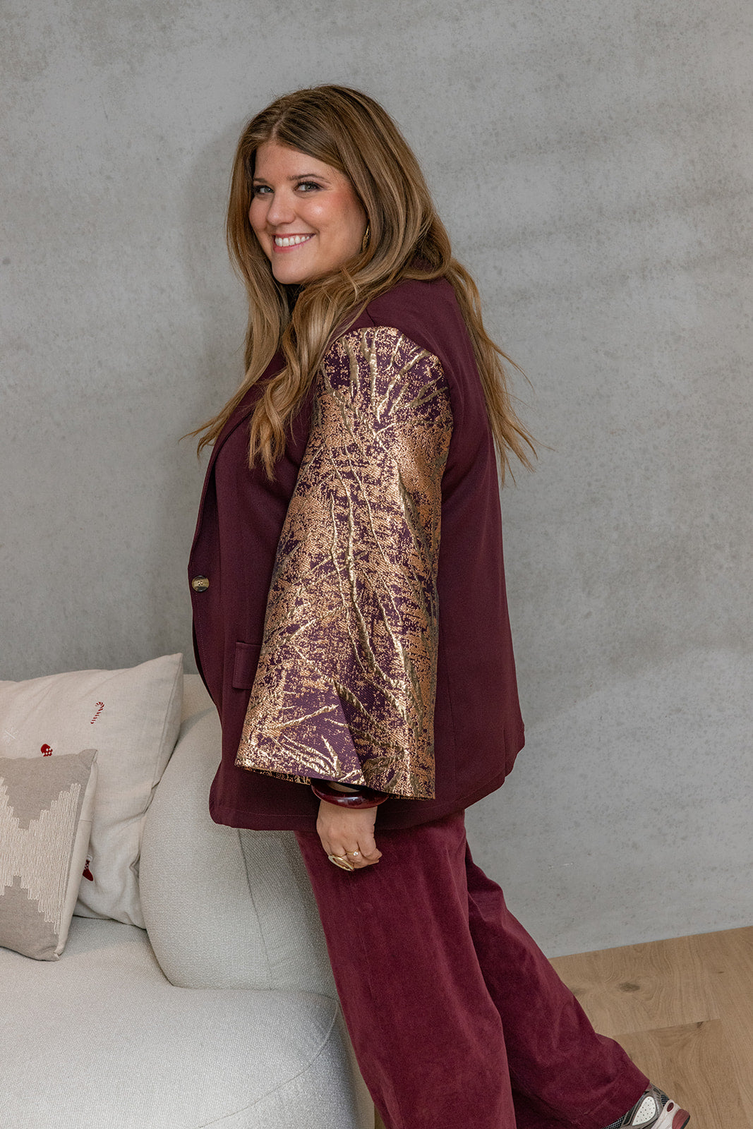 Moana - blazer met special sleeve - burgundy/goud