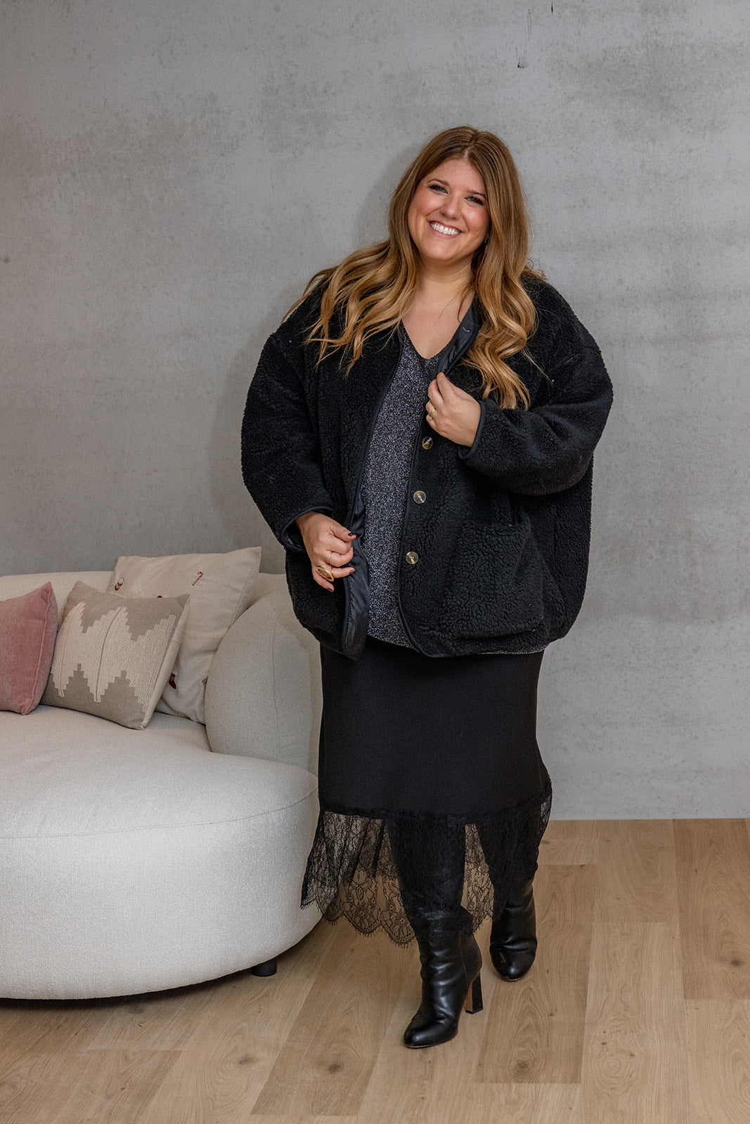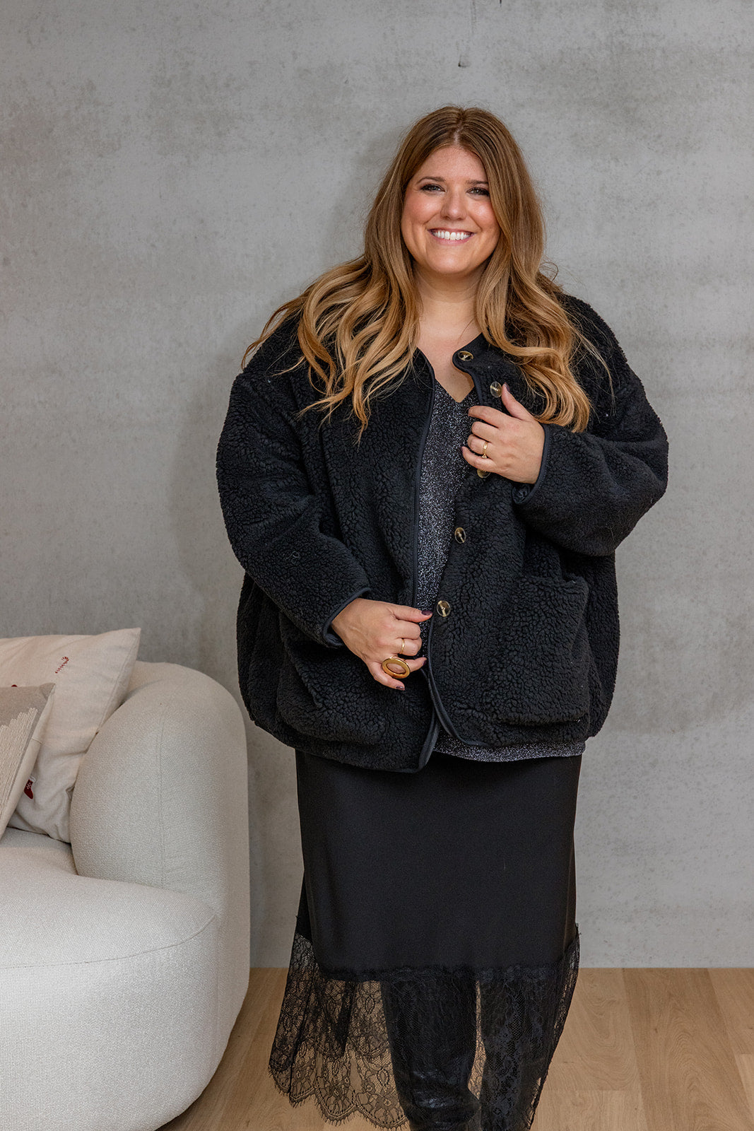 Tina - teddy jas - zwart