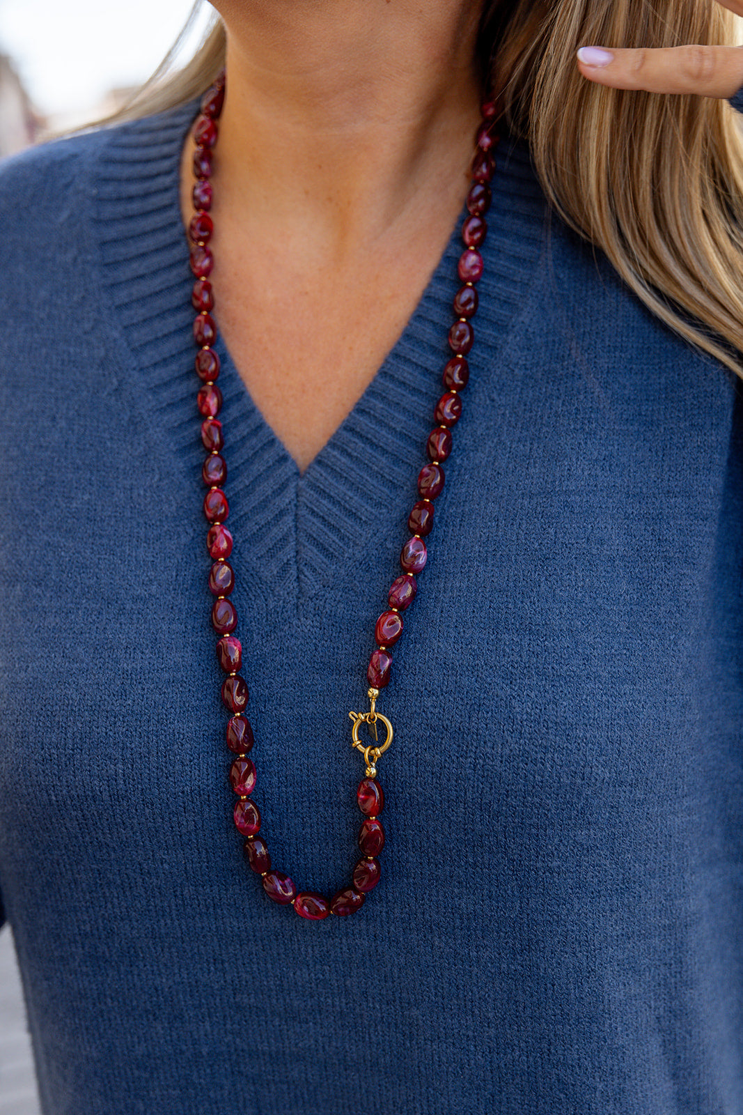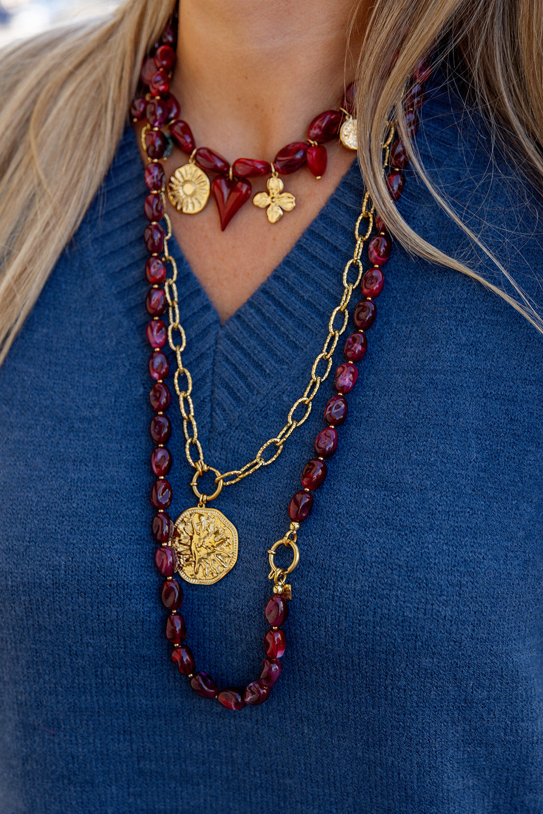 Coralia - kralenketting lang - burgundy/goud
